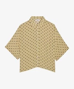CLAUDIE PIERLOT Coffee Contrast-stitching Recycled-cotton Blend Shirt For Womens Naturels