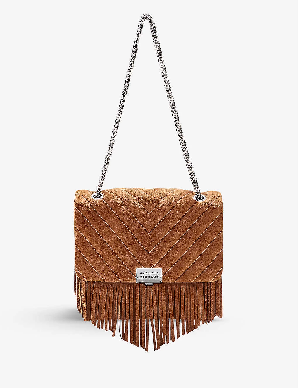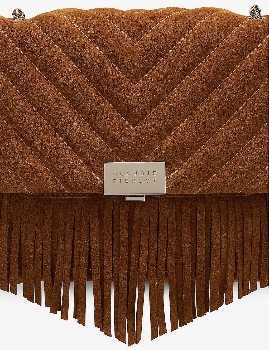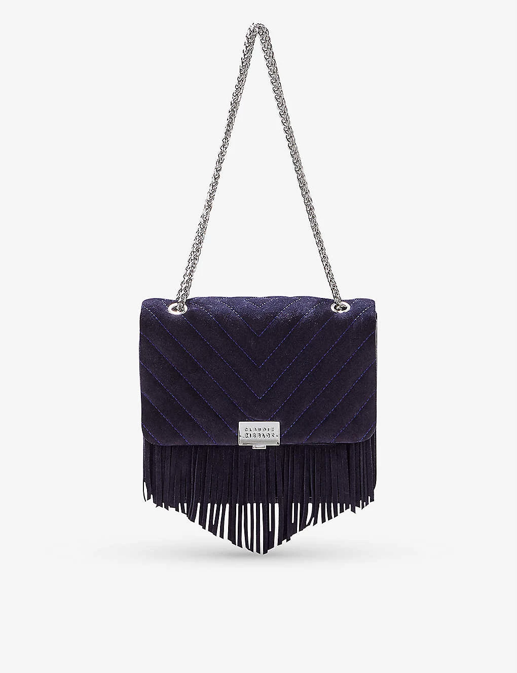 CLAUDIE PIERLOT Angela Fringes Suede Shoulder Bag For Womens Navy