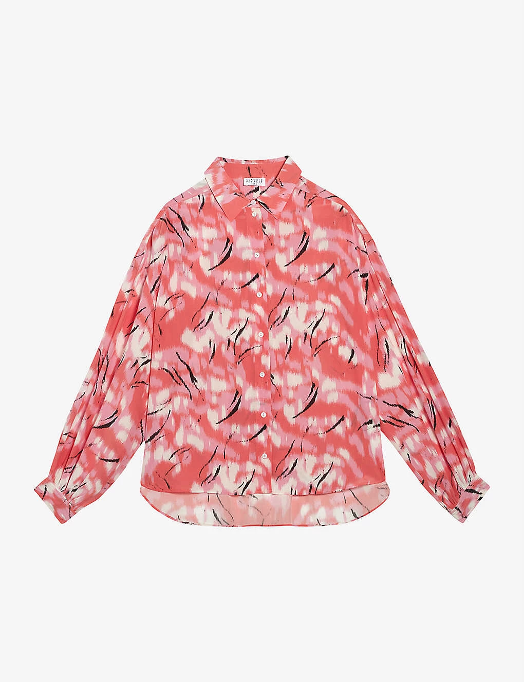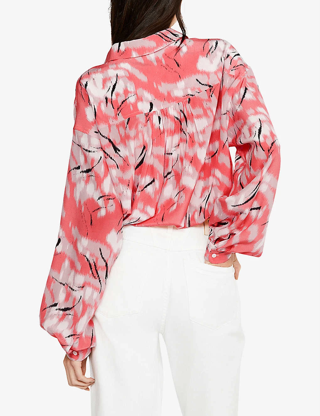 CLAUDIE PIERLOT Caisa Floral-print Balloon-sleeved Silk Shirt For Womens Divers