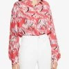 - Relaxed fit, long balloon sleeves, spread collar, abstract floral print, dropped shoulders, button-through front, buttoned cuffs