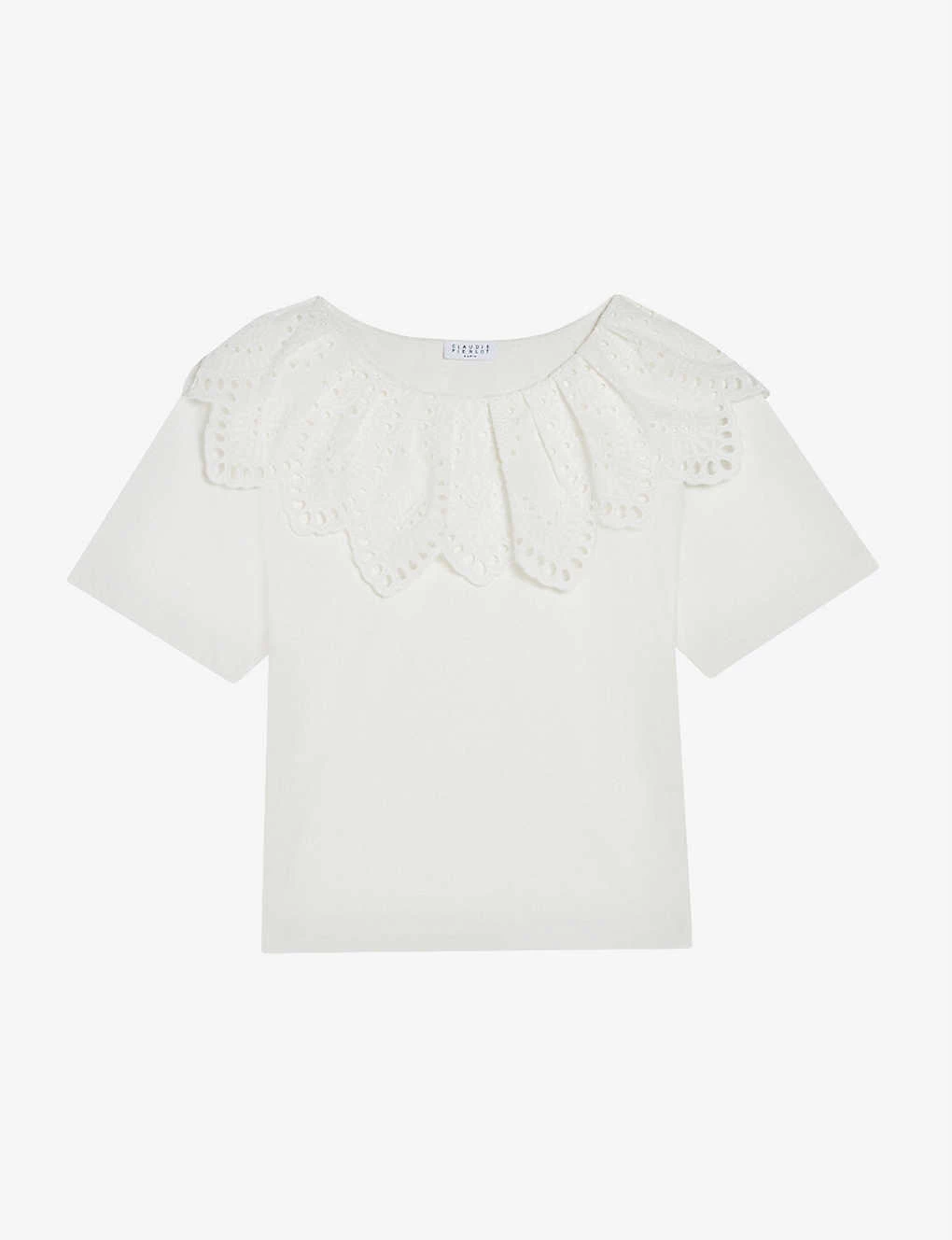 - Round neck, broderie anglais collar, short sleeves, relaxed fit
