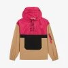 - Relaxed fit, pullover design, long sleeves, zipped neck, drawstring-adjustable hood, colour-blocked motif, kangaroo pocket, side zips, zip pocket at sleeve, brand rubber patch at chest