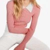 - Slim fit, contrasting collar, long sleeves, flared cuffs, heather knit