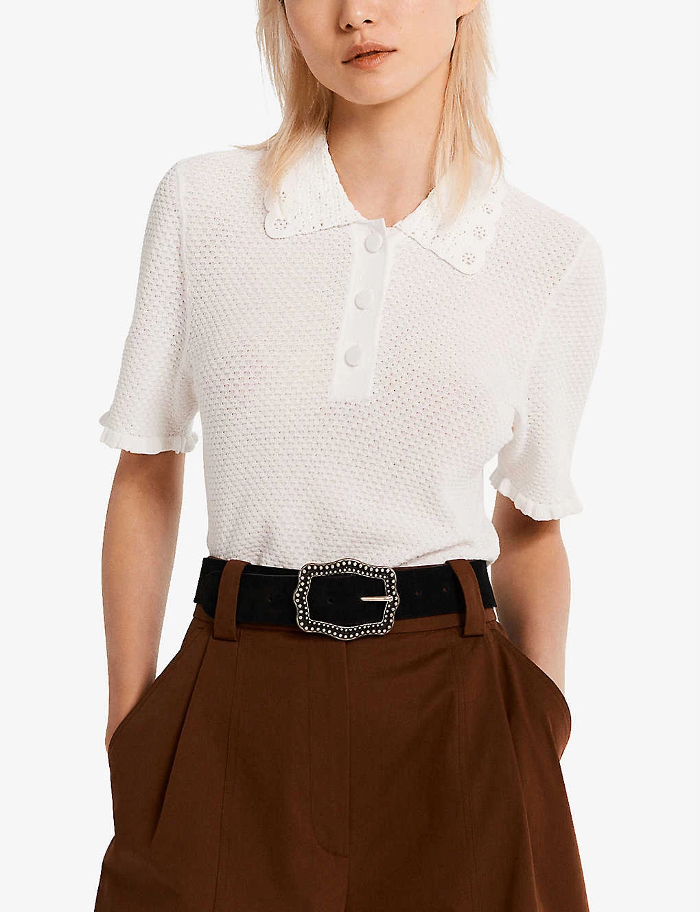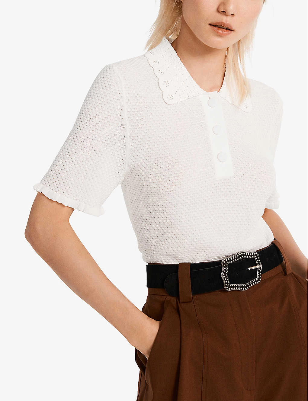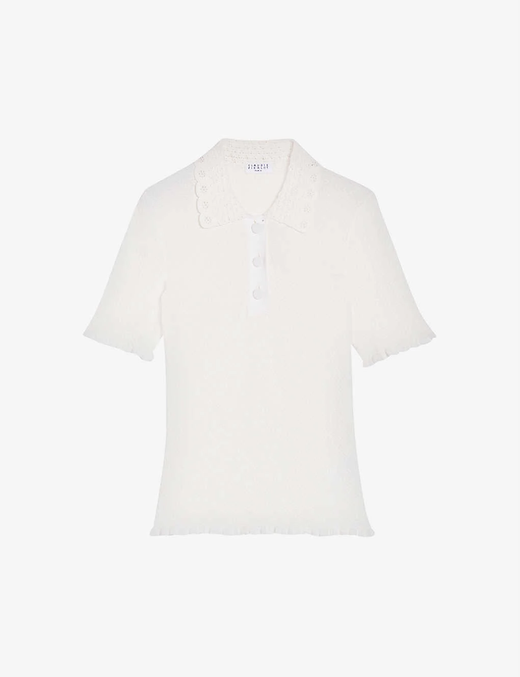 CLAUDIE PIERLOT Modeste Lace-collar Frilled-trim Knitted Polo Shirt For Womens Naturels