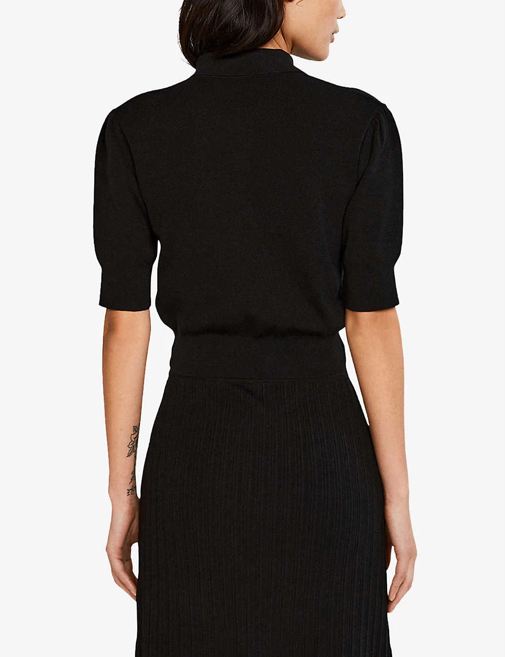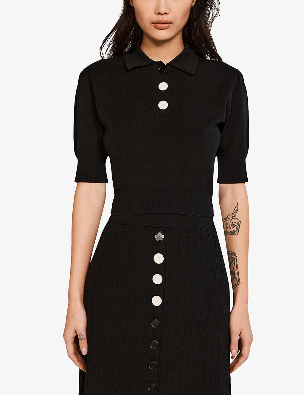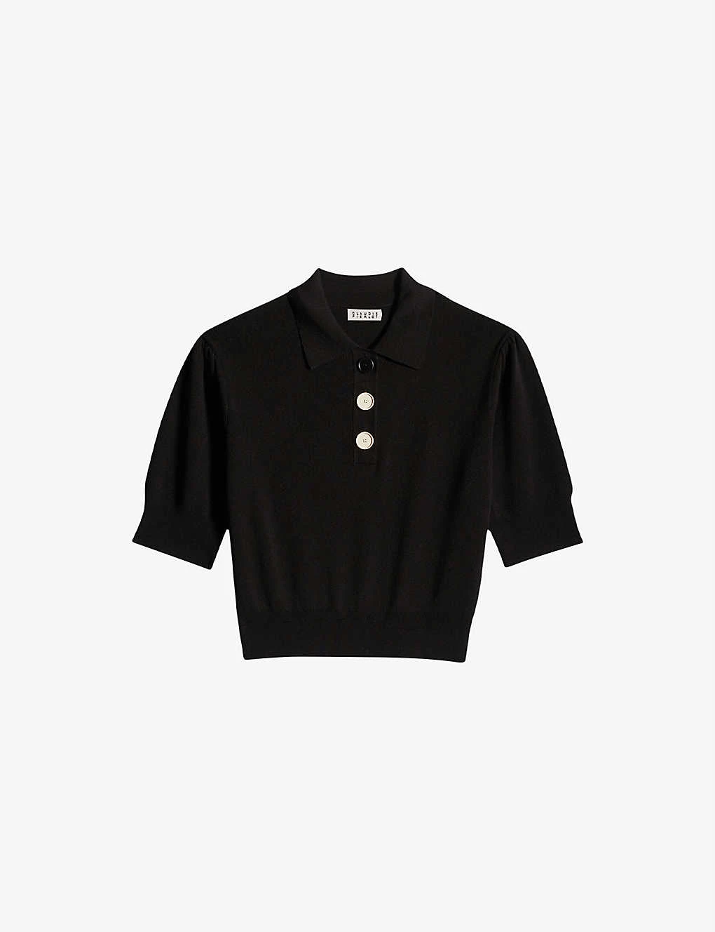 CLAUDIE PIERLOT Puffed-sleeve Knitted Polo Shirt For Womens Black
