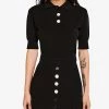 - Collar, buttons at neckline, short puffed sleeves, cropped, ribbed trims