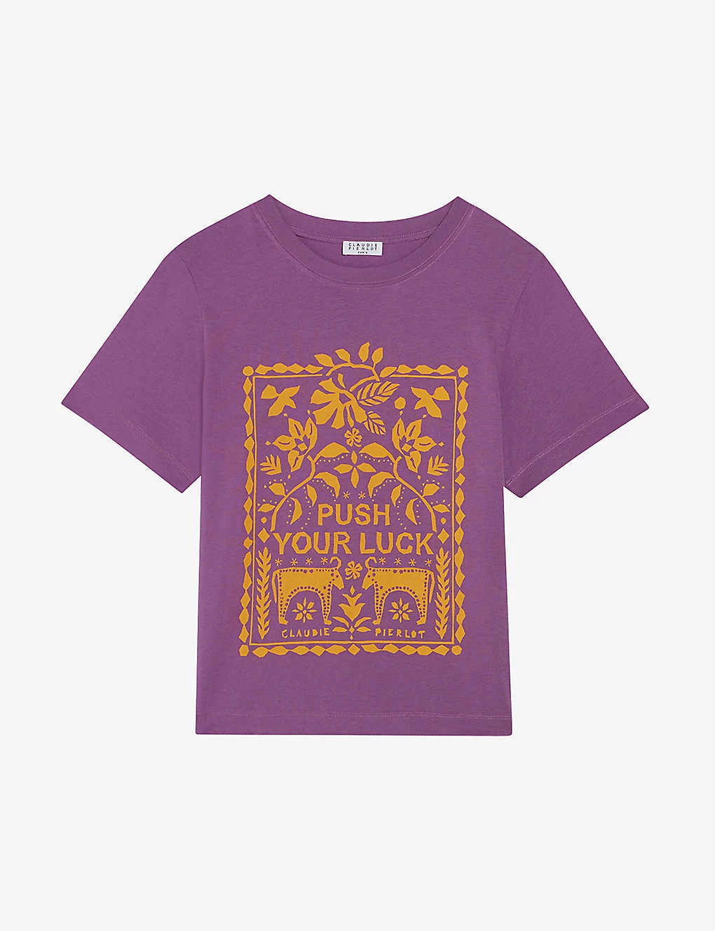 Be the first to review “CLAUDIE PIERLOT Spread Love Graphic-print Woven T-shirt For Womens Verts” Cancel reply