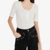 - Slim fit, scoop neck, short sleeves, button details, lace trim
