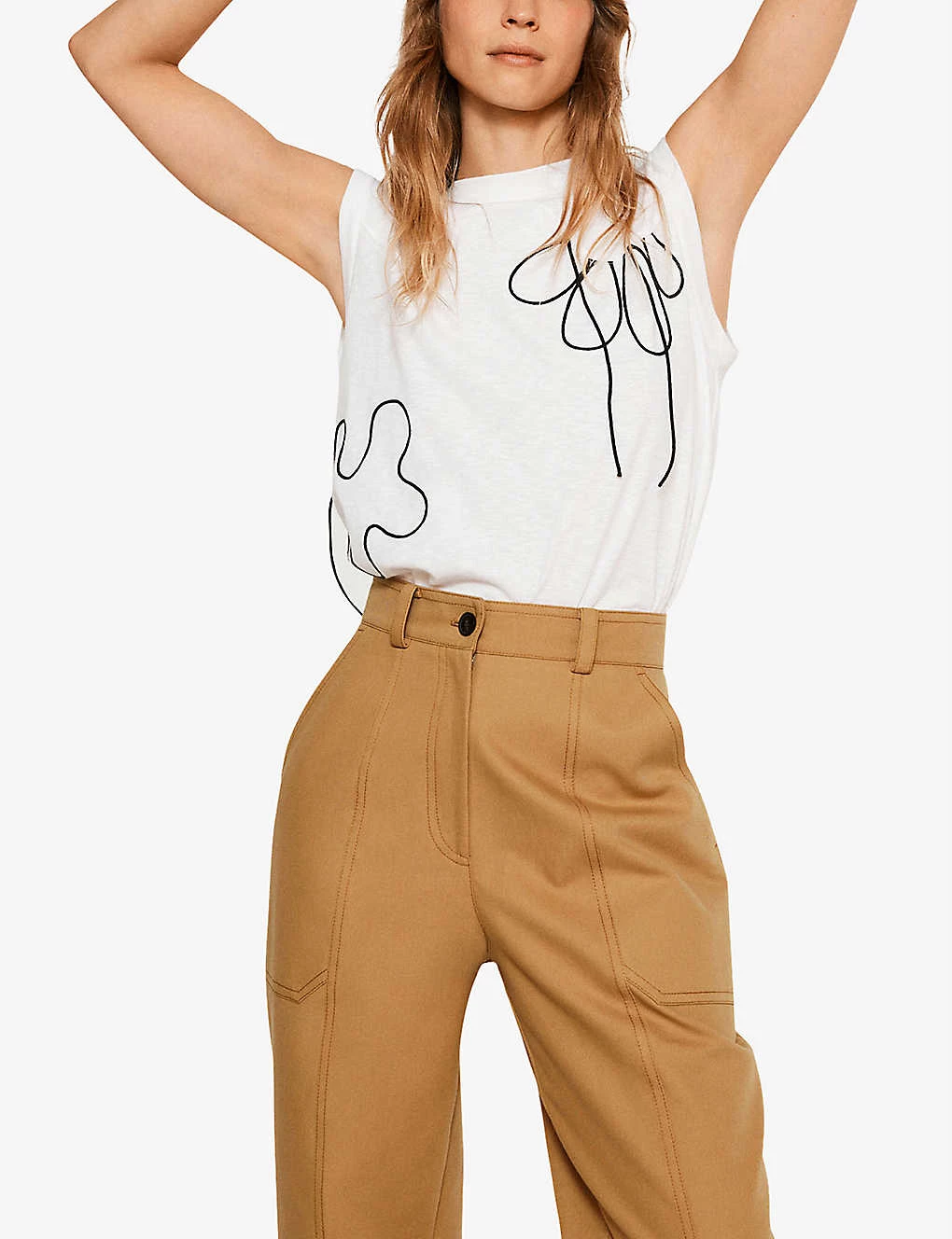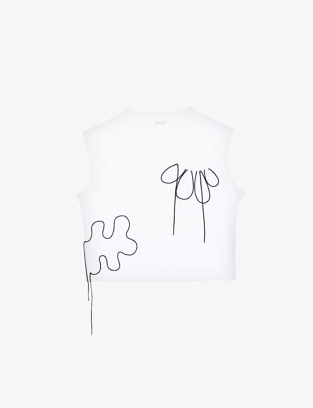 - Round neck, sleeveless, embroidered threading, relaxed fit, cropped silhouette