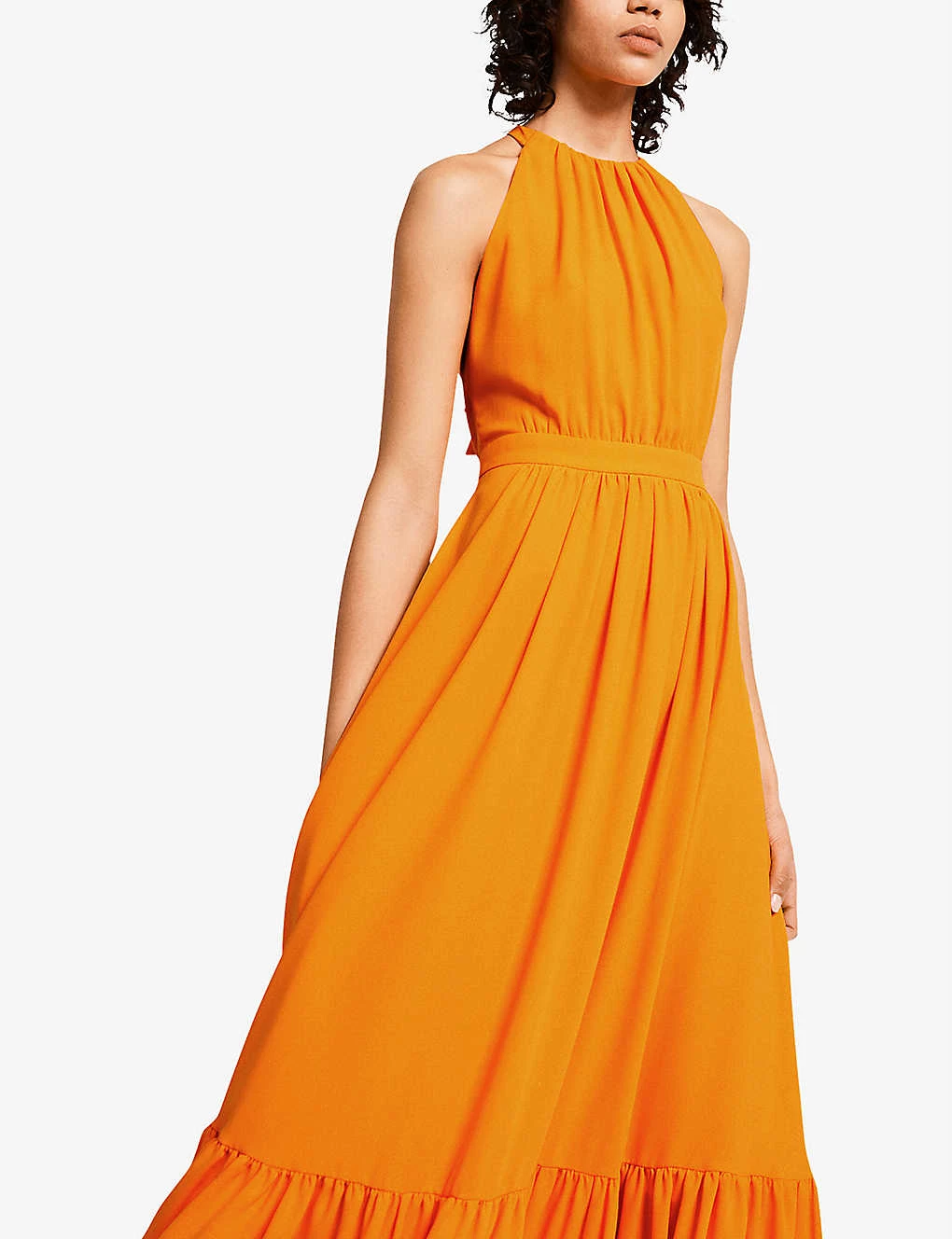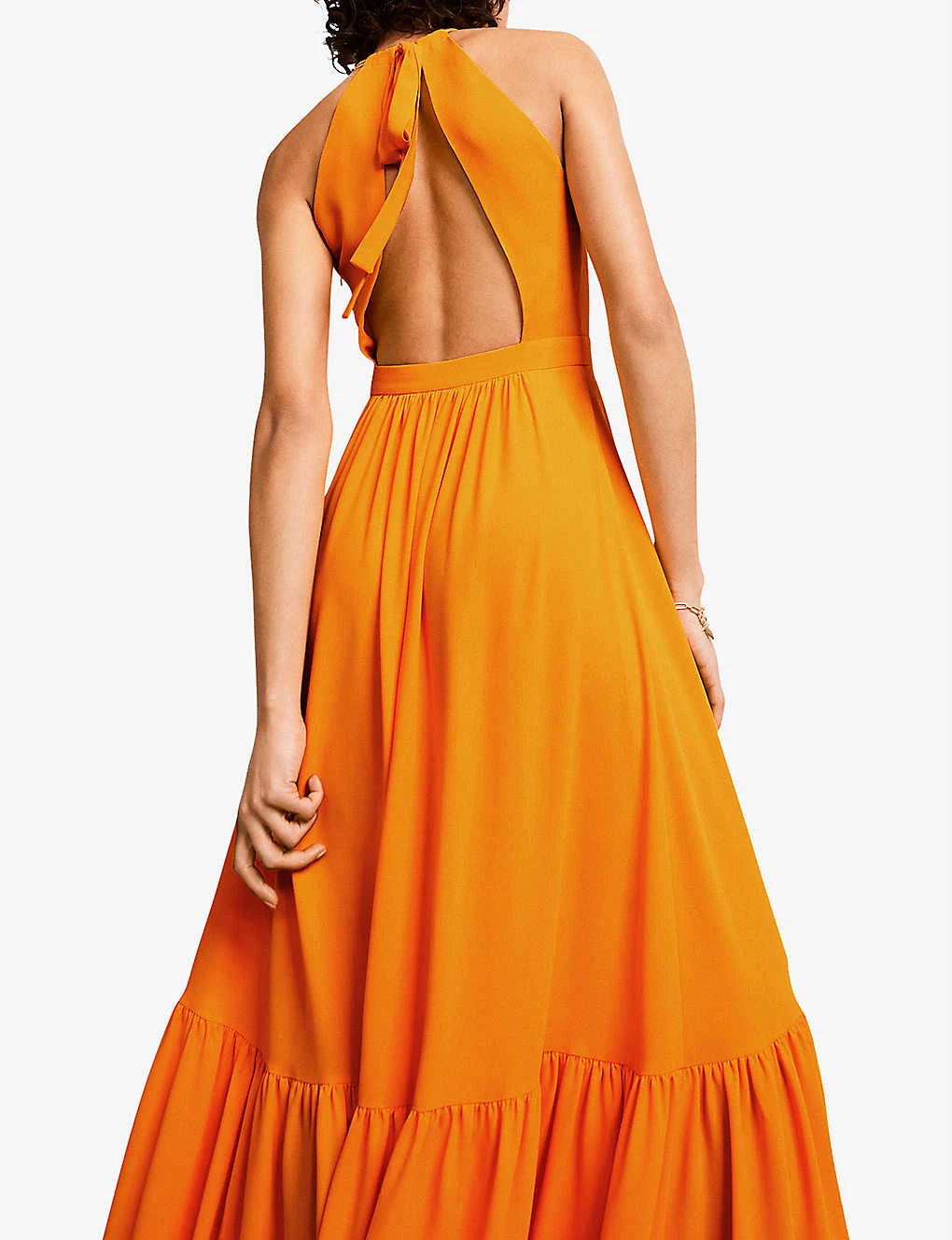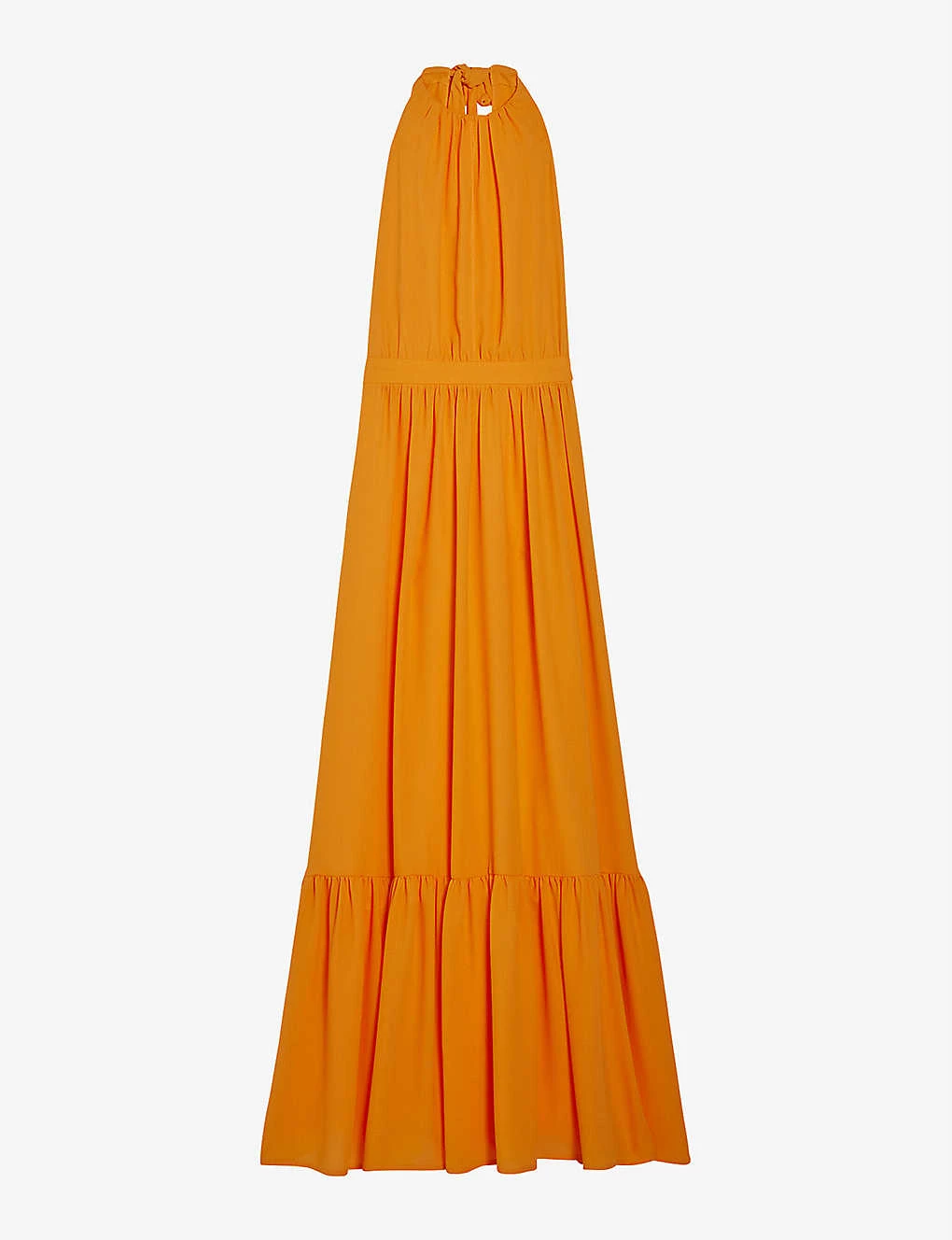 CLAUDIE PIERLOT Tie-neck Backless Recycled-polyester Maxi Dress For Womens Jaunes / Oranges